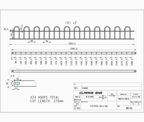 We were hired to design a railing for a client to accomodate a house wall that had alternating heights.